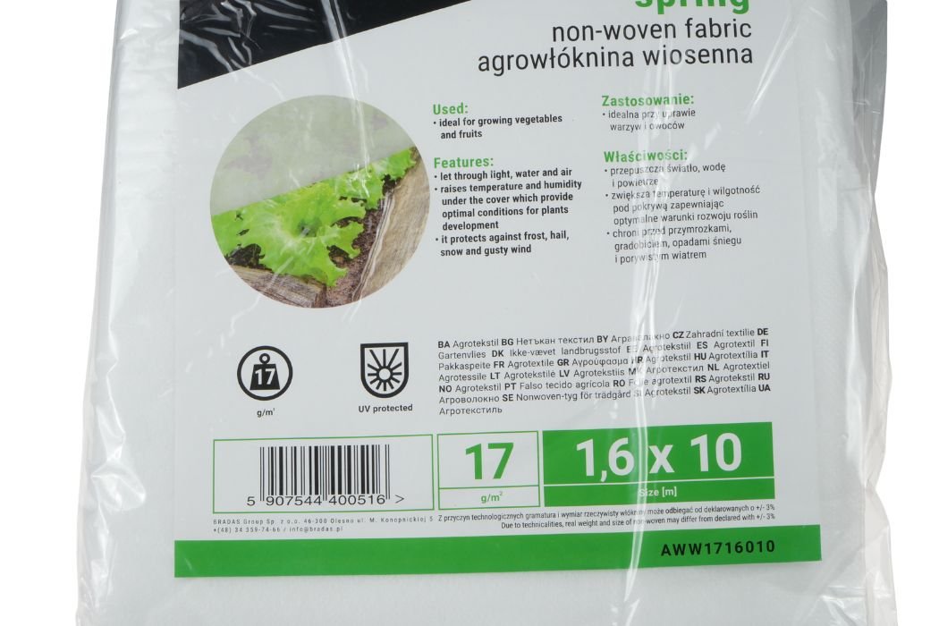 Agrowłóknina wiosenna 17g biała 1,6 x 10 m – ochrona roślin przed przymrozkami