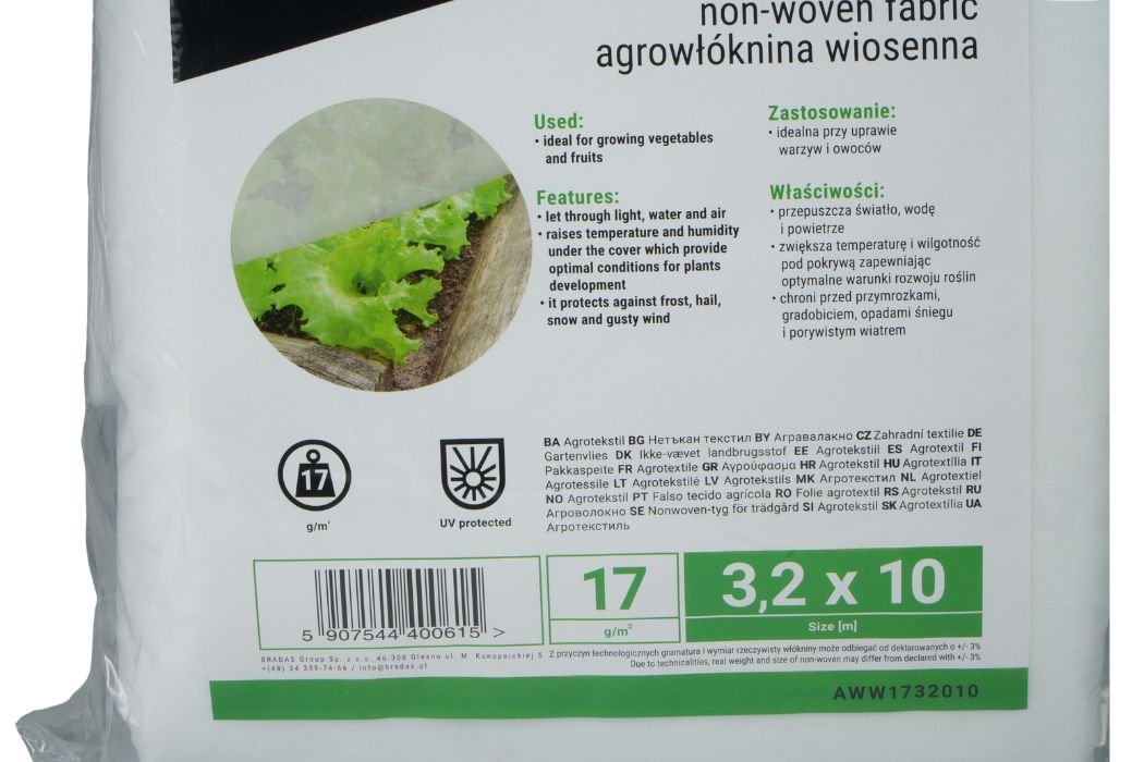Agrowłóknina wiosenna biała 17 g/m² o wymiarach 3,2 x 10 m to lekki materiał ochronny przeznaczony do zabezpieczania roślin przed przymrozkami, wiatrem oraz utratą wilgoci. Dzięki większej szerokości idealnie sprawdza się przy osłonie większych powierzchni upraw.
