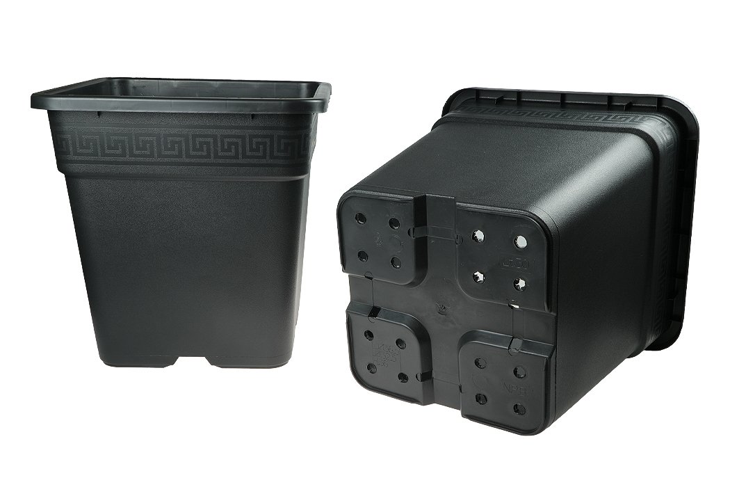 Wysoka konstrukcja doniczki sprzyja prawidłowemu rozwojowi systemu korzeniowego roślin wymagających większej objętości podłoża. Kwadratowy kształt umożliwia stabilne ustawienie doniczek w rzędach na stołach uprawowych i regałach, co jest istotne w produkcji szkółkarskiej. Doniczka ułatwia organizację przestrzeni uprawowej i sprzyja utrzymaniu równych warunków wzrostu roślin.
