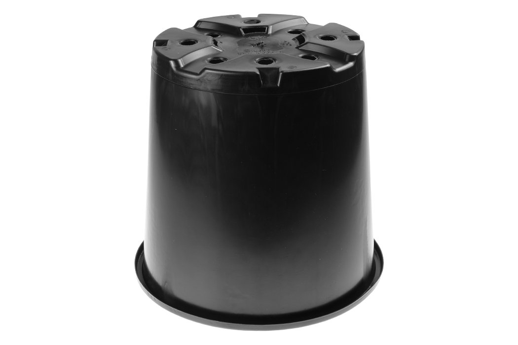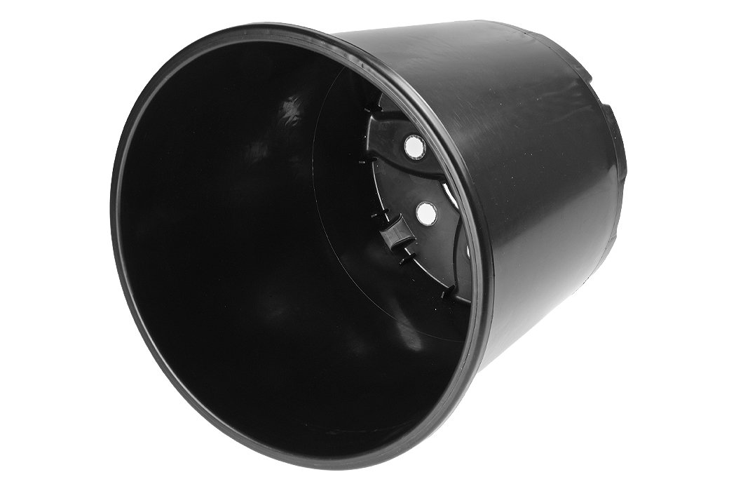 Doniczka produkcyjna o pojemności 10L wykonana z elastycznego tworzywa, przeznaczona do uprawy większych roślin w szkółkach oraz profesjonalnych gospodarstwach ogrodniczych. Wymiar fi 25 cm i wysokość 25 cm zapewniają odpowiednią objętość podłoża dla silnie rozwiniętego systemu korzeniowego.