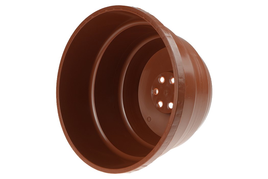 Doniczka wisząca 23 cm w kolorze terakota to rozwiązanie dla profesjonalnych producentów roślin balkonowych. Sprawdza się w intensywnej produkcji surfinii oraz pelargonii, zapewniając odpowiednią przestrzeń dla systemu korzeniowego oraz stabilność rośliny w fazie sprzedażowej.